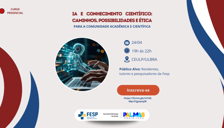 Abertas inscrições para palestra sobre ‘IA e o Conhecimento Científico’ da Fundação Escola de Saúde Pública de Palmas | Prefeitura Municipal de Palmas