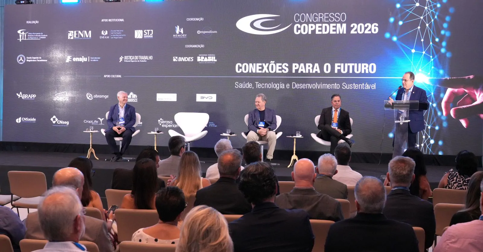 O Congresso Copedem 2026 começou na noite desta quinta-feira (26/3), na Bahia, com uma abertura marcada por defesa da formação judicial, cooperação entre instituições e compromisso com uma Justiça mais preparada para responder às transformações do presente. Com o tema “Conexões para o Futuro: Saúde, Tecnologia e Desenvolvimento Sustentável”, a edição deste ano reúne representantes do sistema de Justiça, dirigentes de escolas da magistratura, especialistas e convidados do Brasil e do exterior.