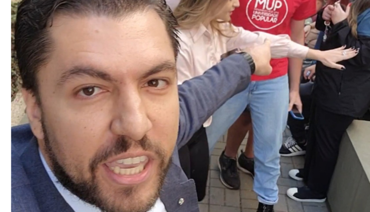 Estavam no campus coordenadora nacional do MBL, Amanda Vetiorazzo e o coordenador do MBL de Osasco, Arthur Scarance, além de um cinegrafista