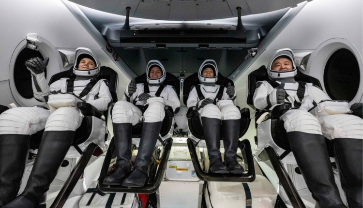 Cápsula ‘Endurance’ transportou o japonês Koichi Wakata, a russa Anna Kikina e os americanos Nicole Mann e Josh Cassada
