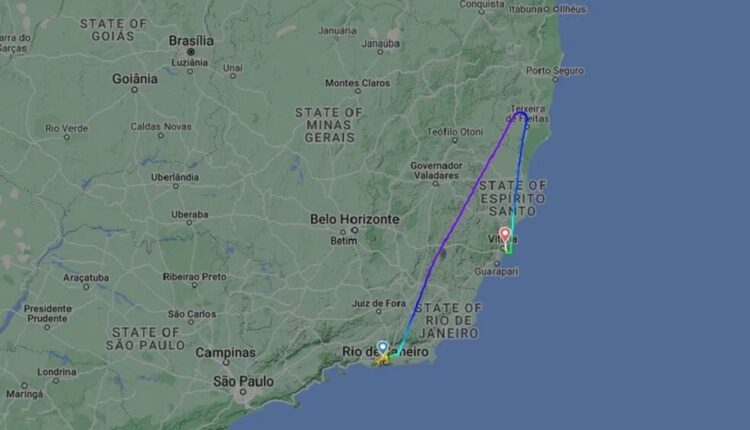 O voo G3 1715 saiu do Aeroporto do Galeão, no Rio de Janeiro, e foi até a cidade baiana de Teixeira de Freitas, segundo o site Flight Tradar