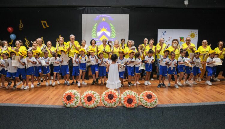 As crianças do Cmei e os acadêmicos da UMA apresentaram a ‘Orquestra de Papel’, com instrumentos confeccionados a partir de materiais recicláveis. A performance levou o público a acompanhar de pé as melodias executadas em conjunto, simbolizando a harmonia entre gerações e o poder transformador da educação.