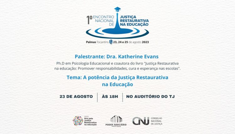 Dentro da programação do 1º Encontro Nacional de Justiça Restaurativa na Educação, a ser realizado presencialmente, no auditório do Tribunal de Justiça do Tocantins (TJTO), na próxima quarta-feira (23/8), destaca-se a primeira palestra que será ministrada no evento.