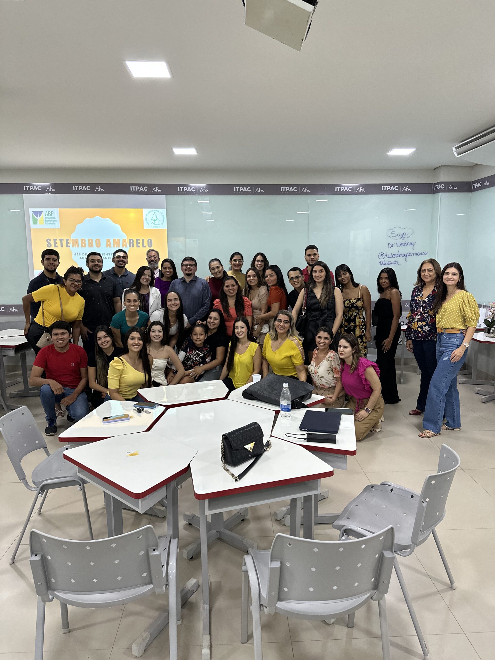 Dentro da programação do Setembro Amarelo, foi realizada na quinta-feira (14/9), a palestra “Suicídio: por que precisamos estar atentos”, com o psiquiatra Wordney Camarço  que contou ainda com a participação do pastor Alex Bruno. Durante evento, os estudantes do cursos de medicina e odontologia da Faculdade Afya (antiga ITPAC) tiveram um tempo para refletir e discutir sobre um tema extremamente importante na saúde e na vida cotidiana.