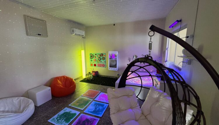 O espaço reúne equipamentos modernos e terapias integradas, como tubos de bolhas, fibras ópticas, piscina de bolinhas com LED, painéis interativos, piso líquido sensorial, poltronas vibratórias e balanço.