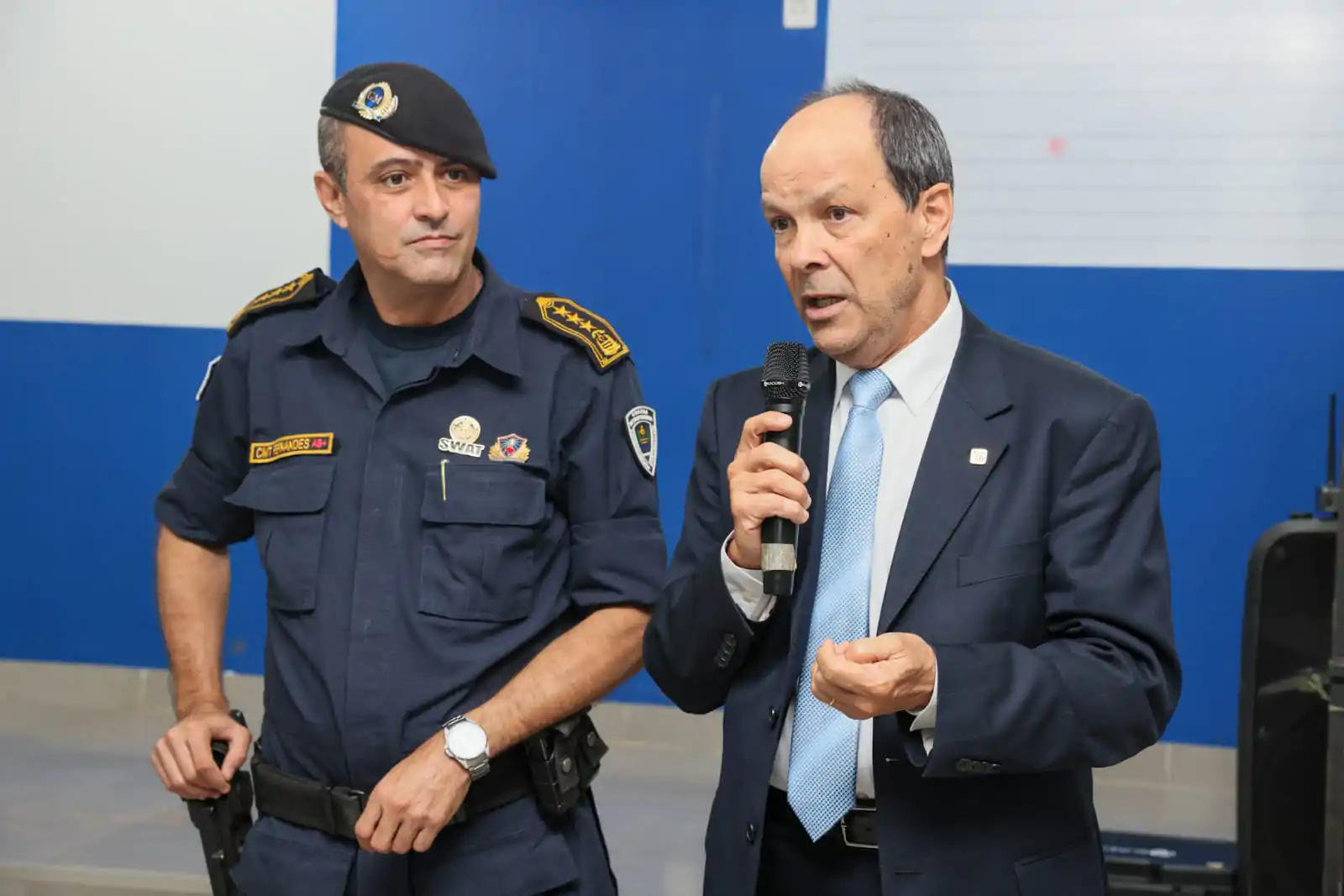 Jaime de Cassio foi recebido pelo Coral Jovem da Guarda Metropolitana e elogiou o trabalho social da instituição. Ele destacou a atuação da GMP no cumprimento da legislação e seu papel crescente na segurança pública.