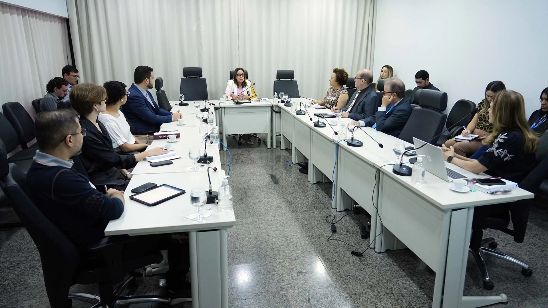 Participaram da reunião também a desembargadora Etelvina Maria Sampaio Felipe, os desembargadores Gilson Valadares e Márcio Barcelos Costa, além de chefes de gabinete e assessores(as).