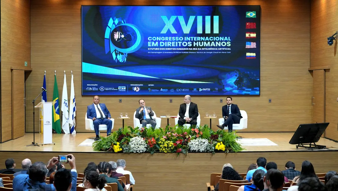 A programação do segundo dia do XVIII Congresso Internacional em Direitos Humanos teve no painel “Uso da IA nas Tomadas de Decisões”, as presenças do diretor geral da Esmat e presidente do Copedem, desembargador e professor doutor Marco Villas Boas; do senador da República pelo Tocantins Eduardo Gomes; do juiz federal Rafael Leite Paulo (TRF); e do professor doutor Tarsis Barreto como mediador. Nas discussões, a implementação de recursos de Inteligência Artificial Generativa (IAGen) como auxiliar na atuação Judicial.
