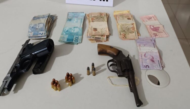 Na residência de uma mulher, os policiais encontraram o restante do dinheiro, R$ 3.786,00 (três mil, setecentos e oitenta e seis reais), e as armas de fogo usadas no crime. No total, foram localizados, a quantia de R$ 7.124,00 (sete mil, cento e vinte quatro reais), em espécie; uma pistola marca Taurus PT 58 ACP, calibre 380, com onze munições intactas; um revólver marca Taurus, calibre 32, com três munições intactas.