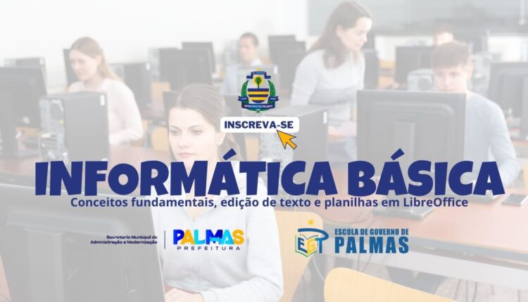 A Prefeitura de Palmas, por meio da Secretaria Municipal de Administração e Modernização (Secad) e da Escola de Governo de Palmas (EGP), abriu inscrições para o curso de capacitação e aperfeiçoamento profissional em Informática Básica. A formação, voltada para servidores municipais, será realizada presencialmente entre os dias 22 de setembro e 8 de outubro de 2025, com carga horária de 40 horas.
