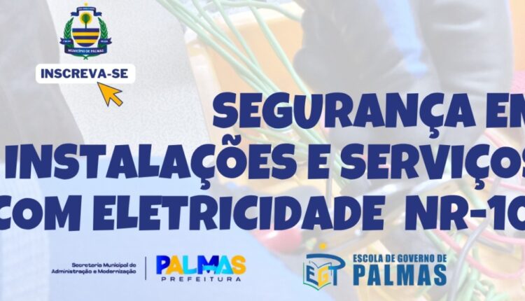 A Prefeitura de Palmas, por meio da Secretaria Municipal de Administração e Modernização (Secad) e da Escola de Governo de Palmas (EGP), abriu inscrições para o curso presencial “Segurança em Instalações e Serviços com Eletricidade – NR10”. A capacitação ocorre entre os dias 18 e 22 de agosto. São oferecidas 40 vagas, voltadas para servidores efetivos, comissionados, contratados e terceirizados da administração pública municipal. As inscrições se iniciam nesta quarta-feira, 30. O edital pode ser conferido aqui.