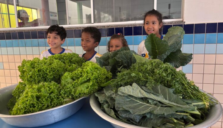 Escola de Palmas doa hortaliças cultivadas por seus alunos a Cmei
