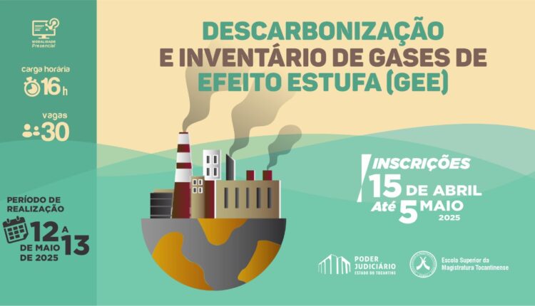 A Escola Superior da Magistratura Tocantinense (Esmat) promove, nos dias 12 e 13 de maio, o curso “Descarbonização e Inventário de Gases de Efeito Estufa (GEE)”, com carga horária total de 16 horas, na modalidade presencial. A capacitação atende à solicitação da Comissão Gestora do Plano de Logística Sustentável (CGPLS) e integra as ações do Poder Judiciário Tocantinense para o cumprimento das diretrizes da Resolução nº 594 do CNJ, de 2024, que institui o Programa Justiça Carbono Zero.