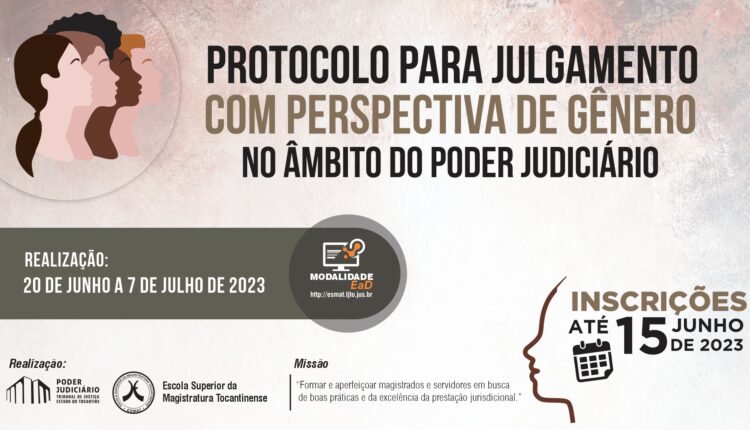 A Escola Superior da Magistratura Tocantinense (ESMAT) anuncia a abertura das inscrições, a partir desta segunda-feira (12/6), para o curso Protocolo para Julgamento com Perspectiva de Gênero no Âmbito do Poder Judiciário. O processo de inscrição será realizado pela Secretaria da Esmat, seguindo as indicações feitas pela Presidência do Tribunal de Justiça do Estado do Tocantins e pela Coordenadoria Estadual da Mulher em Situação de Violência Doméstica e Familiar (CEMSVID), por meio do Processo SEI nº 23.0.000009403-0.