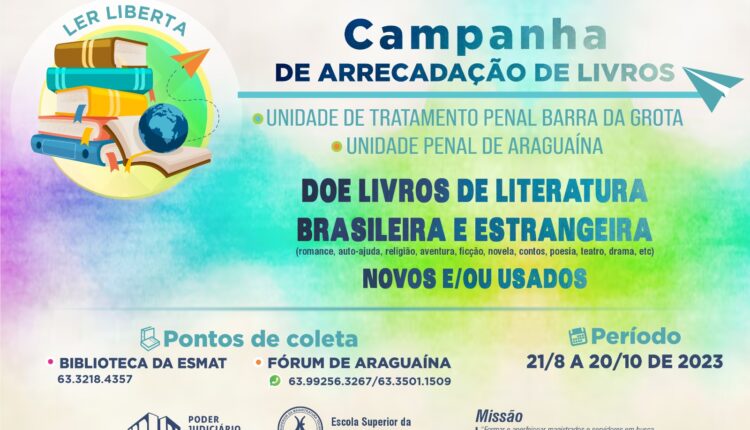 A Escola Superior da Magistratura Tocantinense (Esmat) inicia, nesta segunda-feira (21/8), mais uma campanha de arrecadação de livros visando promover a remição da pena por meio da leitura nas Unidades Penais de Araguaína e Barra da Grota. A campanha “Doe Livros” estará em vigor até o dia 20 de outubro e busca incentivar a reintegração social por meio do hábito da leitura, oferecendo aos(às) participantes a oportunidade de reduzir suas penas.