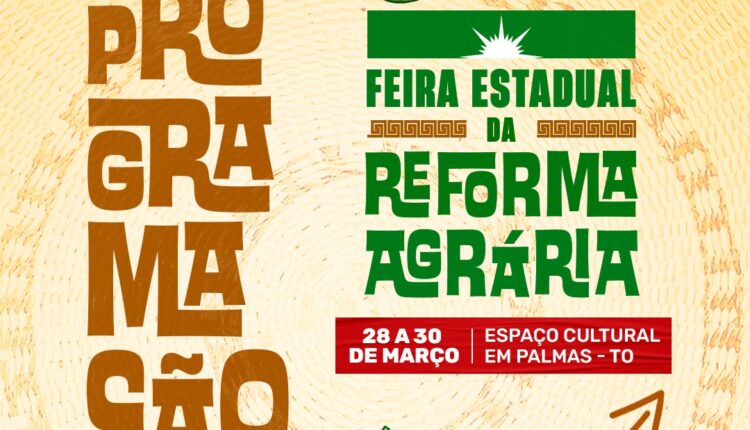 Entre os dias 28 e 30 de março, o Espaço Cultural José Gomes Sobrinho, em Palmas, irá receber a Feira Estadual da Reforma Agrária no Tocantins. A feira, que conta com o apoio da Prefeitura de Palmas, terá exposição de produtos da agricultura familiar e campesina, culinária da terra, apresentações artísticas e culturais, shows e oficinas temáticas.