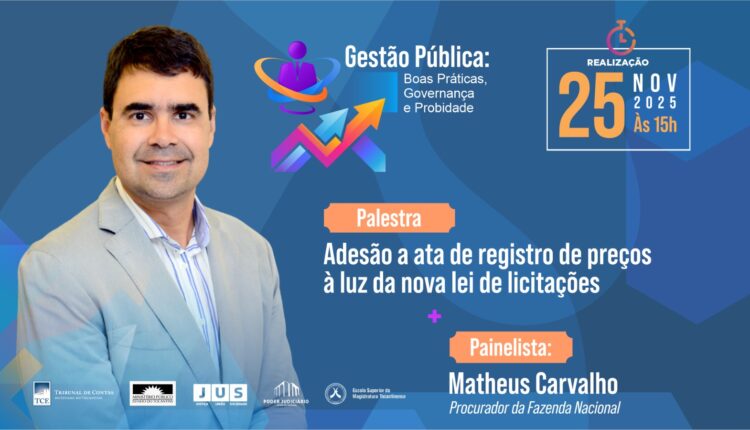 A palestra é voltada especialmente a agentes públicos, gestores(as), assessores(as) jurídicos(as) e demais profissionais envolvidos(as) com contratações administrativas. Inscrições podem ser feitas clicando aqui.