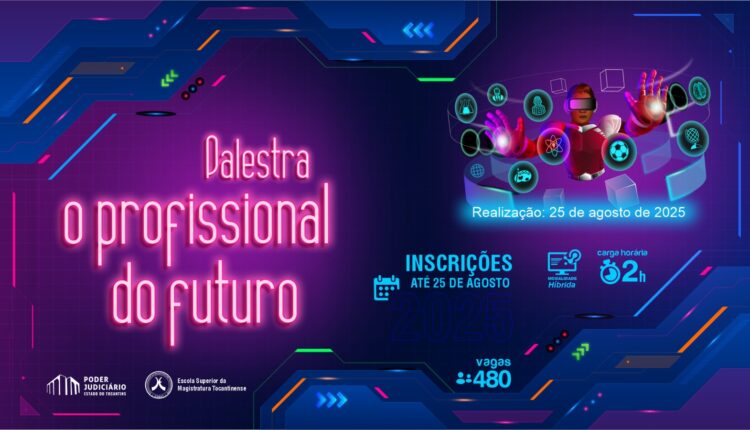 A Escola Superior da Magistratura Tocantinense (Esmat) está com inscrições abertas para a palestra “O Profissional do Futuro”, que será realizada no dia 25 de agosto, das 14h às 16h, em formato híbrido – com atividades presenciais no auditório do Tribunal de Justiça do Estado do Tocantins (TJTO) e transmissão ao vivo.