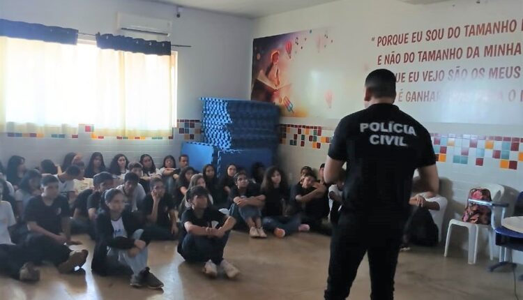 Palestra foi ministrada a alunos da Escola Beatriz Rodrigues; iniciativa é fruto de parceria entre a escola, Secretaria da Segurança Pública e a Escola Superior da Polícia