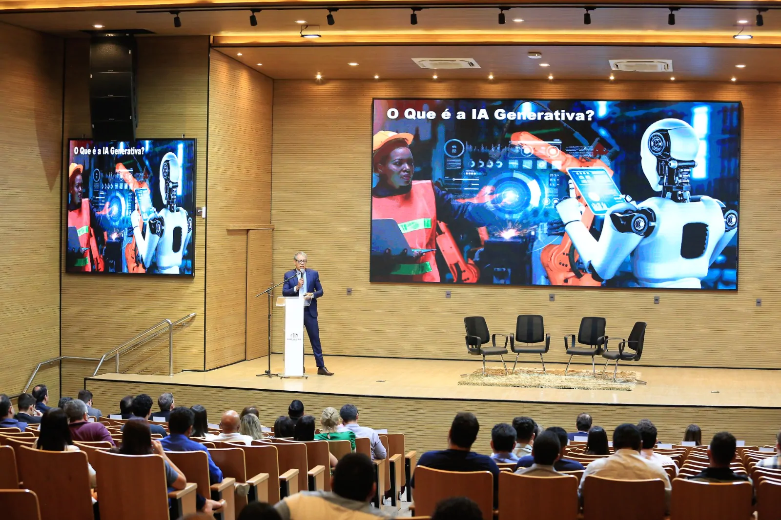 Em relação ao uso global da inteligência artificial, o palestrante reforçou que esse é um movimento imparável e universal. “Isso é um movimento mundial, não tem como parar; o que precisa ser feito é aprendermos a lidar melhor com esse movimento”, disse.