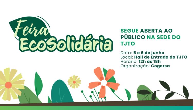 Será realizada nas próximas segunda e terça-feiras (5/6 e 6/6, respectivamente), no hall de entrada da sede do Tribunal de Justiça do Tocantins, a 2ª Feira Ecosolidária – edição Feira das Manas e Liga Feminina de Combate ao Câncer de Palmas – TO. A ação faz parte da programação Junho Ambiental e tem o intuito de fomentar a responsabilidade social e dar cumprimento ao Plano de Logística Sustentável (PLS).