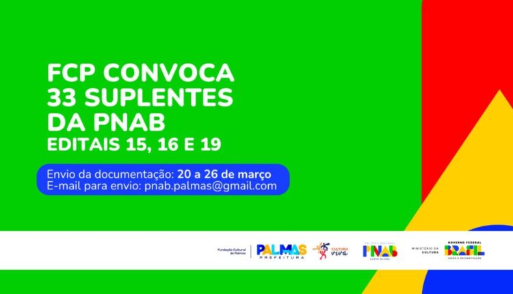 Os suplentes convocados devem encaminhar a documentação de habilitação exigida em cada edital para o e-mail pnab.palmas@gmail.com, a partir de quinta-feira, 20. O prazo final para o envio dos documentos é quarta-feira, 26. Após a análise dos documentos, será publicado o resultado final e os contemplados serão convocados para assinatura dos contratos.