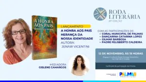 A 49ª edição do projeto Roda Literária, da Fundação Cultural de Palmas (FCP), lança o livro ‘A honra aos pais: herança da nossa identidade’. Gratuita, a atividade acontece no Espaço Cultural José Gomes Sobrinho, na Capital, nesta quarta-feira, 12, às 19 horas; e além do bate-papo com a autora Jenair Vicentini, ela também conta com a participação de convidados especiais para esta noite de valoração da arte literária e da cultura.