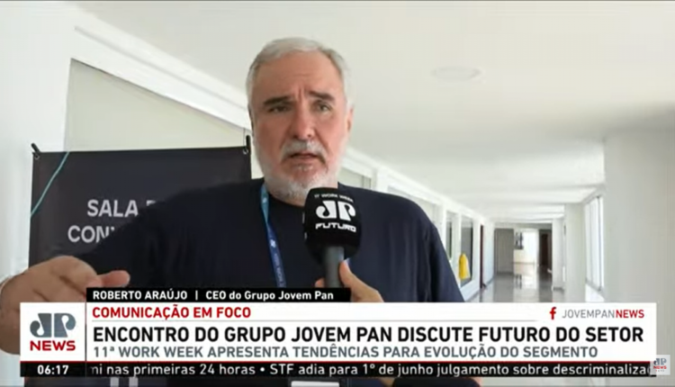 Na quinta-feira, 25, afiliadas do Grupo Jovem Pan se reuniram na 11ª edição do Work Week, na ilha de San Andrés, na Colômbia, para discutir as transformações do setor de comunicação e a relevância do segmento no Brasil. Os debates foram focados no futuro e nas tendências de mídia que devem conquistar os consumidores. O presidente do Grupo Jovem Pan, Roberto Araújo, afirma que é preciso pensar “fora da caixinha” para sempre estar um passo à frente, que é uma das principais características da emissora. “Precisamos estar de olho em todas as tendências, sejam de coisas que estão acontecendo agora ou que vão acontecer nos próximos anos. Então, faz parte também desse encontro instigarmos na cabeça dos afiliados para olhar para tendências que eles podem não estar aproveitando ou ainda não conhecem e também daquelas que estão por vir. Se a gente não estiver pronto para entender todas as modificações que estão acontecendo, você fica refém do futuro. Você tem que usar o futuro ao seu favor”, declarou.