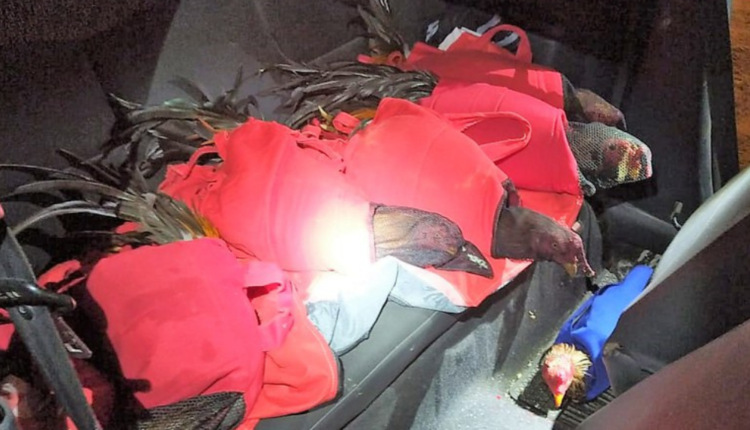 Galos usados para rinhas são apreendidos dentro de carro em Santa Catarina