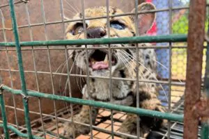 De acordo com o morador que acionou as autoridades, o animal foi avistado por volta de uma hora da madrugada, após ser acuado por cães da propriedade. Durante a inspeção preliminar, a equipe técnica constatou que a jaguatirica apresentava ferimentos aparentes, principalmente na região dos olhos e nas patas, o que comprometia sua capacidade de defesa e deslocamento.