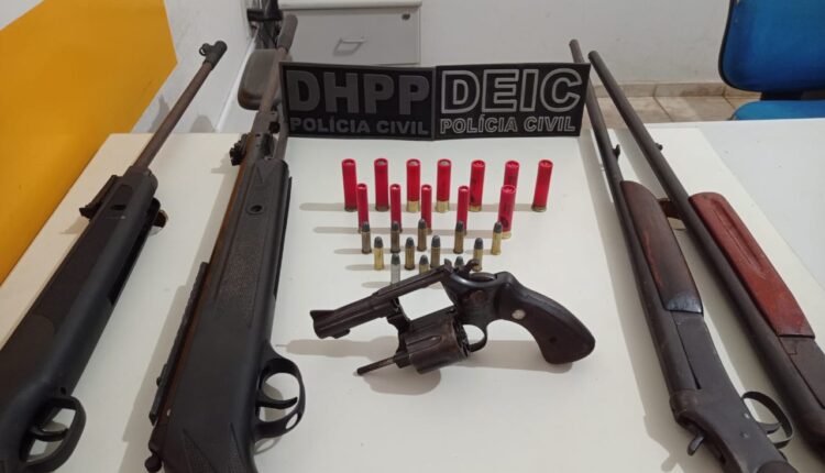 Nas primeiras horas da manhã desta sexta-feira, 16, a Polícia Civil do Tocantins (PC-TO), por meio de ação conjunta realizada por policiais da 7ª Delegacia Regional de Gurupi (7ª DRPC) com apoio de agentes da 94ª DP de Peixe da 8ª Divisão de Combate ao Crime Organizado (8ª DEIC), e 3ª Divisão de Homicídios e Proteção à Pessoa (DHPP), ambas de Gurupi, apreenderam quatro armas de fogo, grande quantidade de munição de calibre variado e efetuaram a prisão de um indivíduo de 56 anos, pelo crime de posse ilegal de arma de fogo.