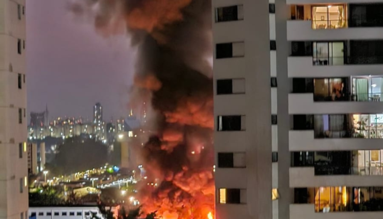 Ninguém estava no galpão no momento em que fogo se espalhou pelo imóvel; ruas próximas do prédio foram isoladas