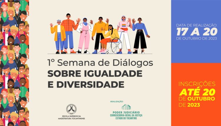 Estão abertas as inscrições para as atividades da I Semana de Diálogos sobre Igualdade e Diversidade. A ação, promovida pela Escola Superior da Magistratura Tocantinense (ESMAT), visa promover o entendimento, sensibilização e engajamento sobre questões relacionadas à igualdade e à diversidade. Por meio de discussões, o Evento busca fortalecer a consciência sobre a importância da igualdade de direitos e o valor da diversidade em ambientes sociais e profissionais, visando criar um ambiente mais inclusivo e equitativo.