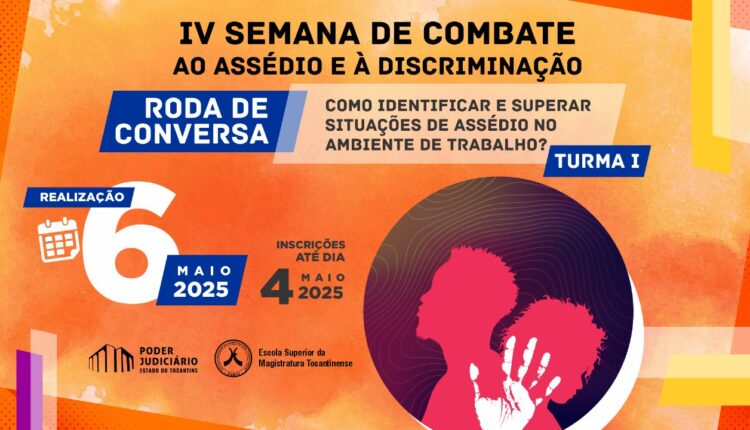 Estão abertas as inscrições para a primeira turma da roda de conversa “Como identificar e superar situações de assédio no ambiente de trabalho?”, dedicada a magistrados(as), servidores(as) e estagiários(as) do Poder Judiciário Tocantinense, profissionais, colaboradores(as), órgãos parceiros e membros da comunidade em geral.