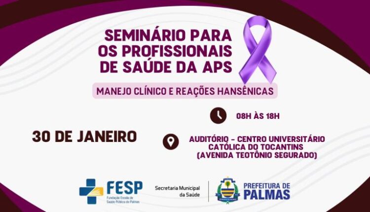 A Fundação Escola de Saúde Pública de Palmas (Fesp), em parceria com a Coordenação Técnica e a Vigilância em Hanseníase e Tuberculose, abre as inscrições para o seminário voltado aos profissionais de saúde da Atenção Primária à Saúde (APS) sobre o manejo clínico e reações hansênicas, que será realizado no dia 30 de janeiro.
