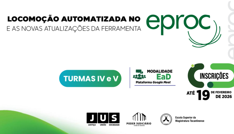 A Escola Superior da Magistratura Tocantinense (Esmat) está com inscrições abertas, até amanhã (19/2), para duas turmas do curso “Locomoção Automatizada no Eproc e as Novas Atualizações da Ferramenta”, voltado à capacitação de servidores(as) do Poder Judiciário Tocantinense que atuam diretamente na expedição de mandados e na gestão das despesas de locomoção.