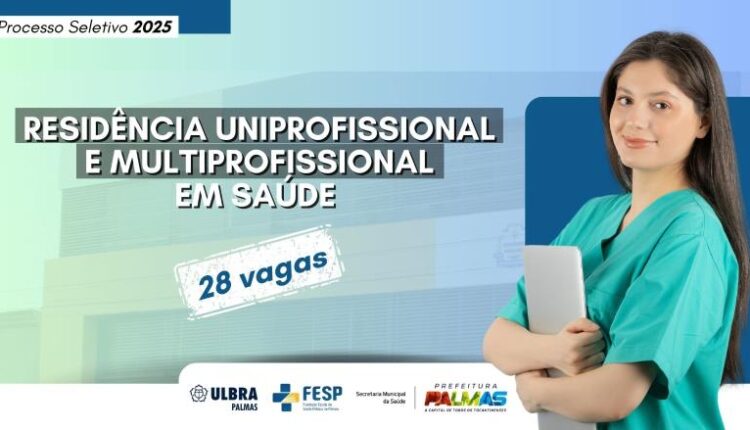 A Fundação Escola de Saúde Pública de Palmas (Fesp), em parceria com a Comissão de Residência Multiprofissional em Saúde (Coremu) do Centro Universitário Luterano de Palmas (Ceulp/Ulbra), encerra nesta sexta-feira, 17, as inscrições para o processo seletivo de residência uniprofissional e multiprofissional em saúde.