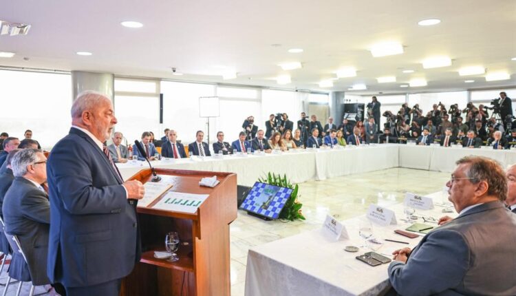 Presidente Luiz Inácio Lula da Silva durante reunião ministerial de cem dias do governo