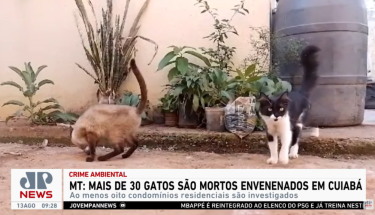 A morte em série de gatos em condomínios residenciais de Cuiabá, no Mato Grosso, tem chamado a atenção de moradores. Ao todo, 30 felinos foram envenenados. Os registros foram feitos em 9 locais diferentes, sendo que alguns animais eram comunitários e recebiam comida e cuidados de moradores diferentes desses residenciais. As mortes aconteceram entre junho e agosto deste ano, sendo que seis mortes aconteceram no mesmo condomínio. Todos foram mortos por envenenamento. Segundo relatos de moradores, os animais foram encontrados mortos com a boca aberta e sem ferimentos no corpo. Mesmo diante dos fatos, poucos deram andamento nas denúncias. “Mandaram primeiramente em grupos, que não são oficiais do condomínio. Logo que a situação chegou até mim, procurei a delegacia e fui instruído pelo atendente: ‘Precisamos de mais detalhes para que se inicie uma investigação’. […] Mandei um comunicado interno para os moradores. Após eu divulgar, apenas um condômino me procurou, mas as informações foram insuficientes”, diz Henrique Schneiker, síndico de um condomínio. Diversas reclamações de gatos que andavam soltos foram feitas por moradores, com condôminos sendo notificados.