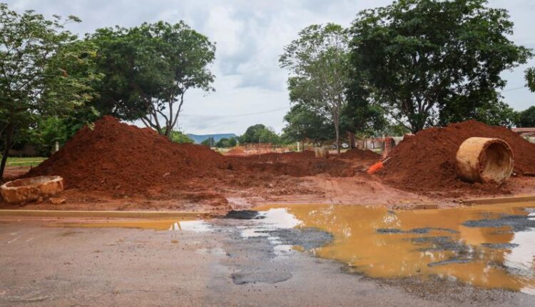 Intensificação das chuvas impede continuidade dos trabalhos que já avançaram 1.200 metros de drenagem pluvial e 600 metros de duplicação de pavimentação asfáltica