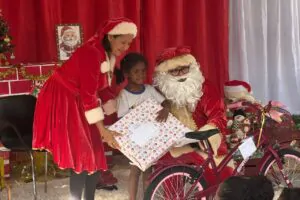 Representando a diretora da unidade, Iranilde Stavaris, a supervisora pedagógica Shirley Ferreira destacou a importância do gesto de solidariedade. “Ficamos muito felizes por sermos contemplados novamente com esse momento que é tão esperado por eles desde a confecção das cartinhas até a entrega de hoje, que encerra com chave de ouro o ano letivo”, comentou.