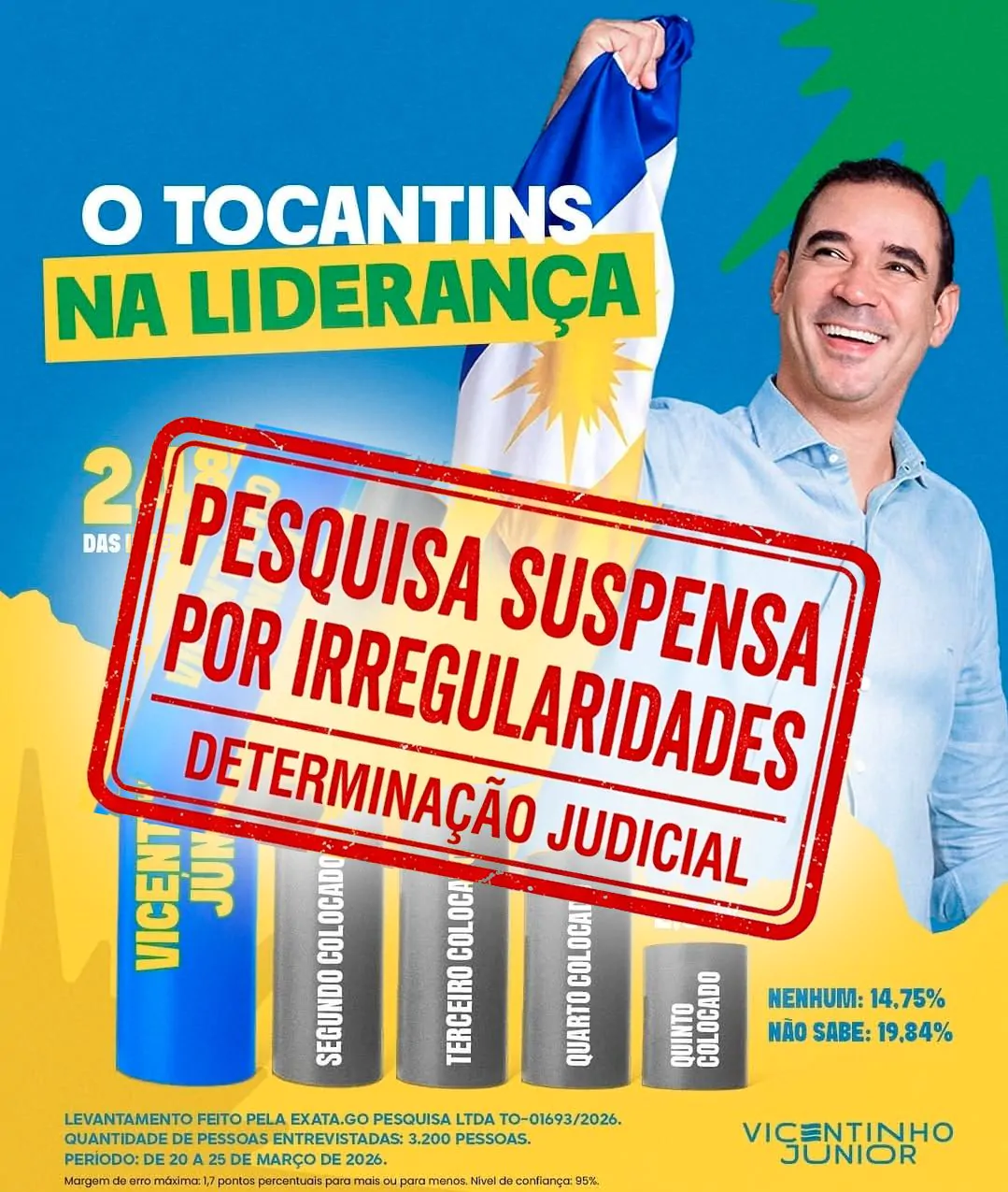 As pesquisas suspensas estão registradas na Justiça Eleitoral sob os números TO-01693/2026 e TO-06645/2026.