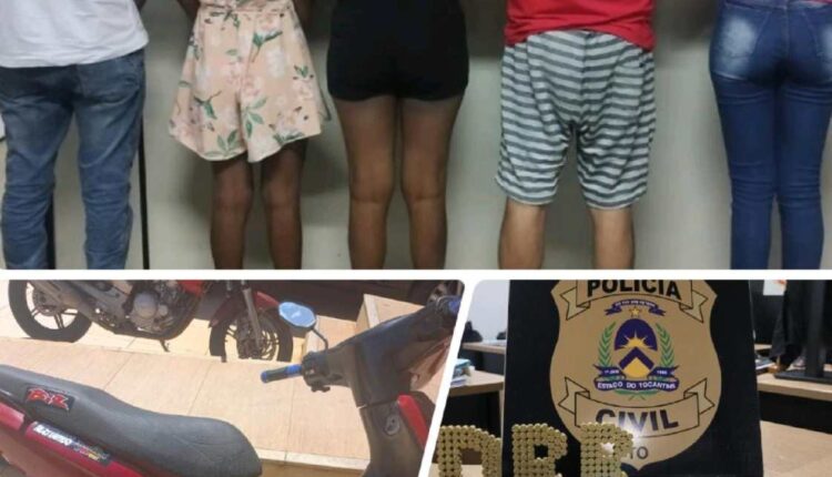 Ao mesmo tempo, policiais civis da DRR se deslocaram para vários pontos de Araguaína onde foram presos mais dois homens, de 30 e 42 anos, também pelo crime de receptação, bem como três mulheres, de 21, 22 e 45 anos, capturadas em virtude da prática do mesmo crime. Com os presos, os policiais civis localizaram cinco aparelhos celulares, que juntamente com a motocicleta totalizaram mais de R$ 10 mil em dinheiro, uma vez que tanto o veículo, quanto os aparelhos são produtos de crimes.