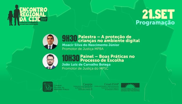 O seminário integra a programação do “Encontro Regional da CIJE – Região Norte”, que reunirá, em Palmas, entre os dias 20 e 22 de setembro, membros do Ministério Público dos estados do Norte que atuam na defesa dos direitos da criança e do adolescente.