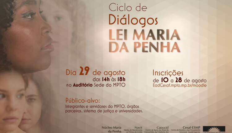 Estão abertas as inscrições para o Ciclo de Diálogos: Lei Maria da Penha, que acontecerá no dia 29, das 14h às 18h, na sede do Ministério Público do Tocantins (MPTO), em Palmas.