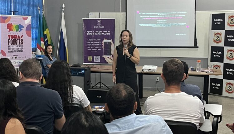 A capacitação contou com a participação dos secretários de Estado da Segurança Pública, Wlademir Mota Oliveira, e da Mulher, Berenice Barbosa.
