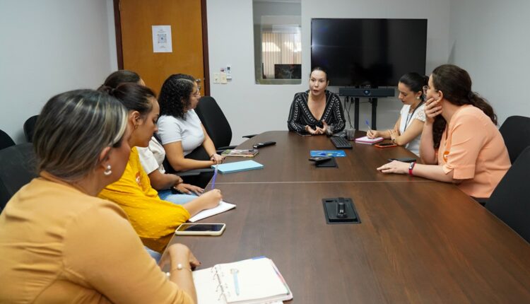Participaram da reunião as servidoras da Semus Pâmela Eva Teixeira, diretora de Atenção Primária; Lorena Gonçalves, coordenadora de ciclos de vida; Juliana Santos, enfermeira do consultório de rua; a psicóloga Elisa Alves e a enfermeira Evelin Santos.