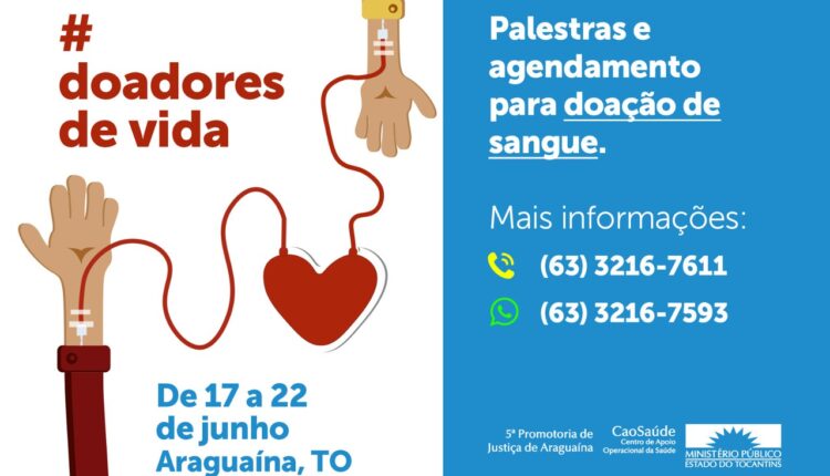 O Ministério Público do Tocantins (MPTO), por meio 5ª Promotoria de Justiça de Araguaína, com o auxílio do Centro de Apoio Operacional da Saúde (CaoSaúde), promoverá uma campanha “Doadores de Vida”, de conscientização sobre doação de sangue, envolvendo os servidores públicos de Araguaína.