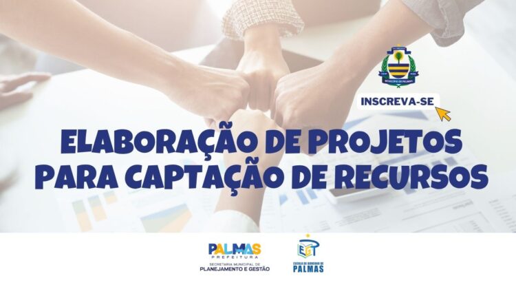 A Prefeitura de Palmas, por meio da Secretaria Municipal de Planejamento e Gestão (Seplan) e da Escola de Governo de Palmas (EGP), está com inscrições abertas para o curso de capacitação e aperfeiçoamento profissional ‘Elaboração de Projetos para Captação de Recursos’. Interessados podem se inscrever até as 12 horas do dia 6 de novembro, por meio deste link.