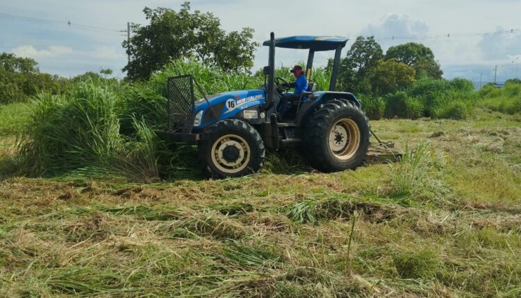 Além das roçadeiras, equipes contam com o reforço de tratores em áreas maiores